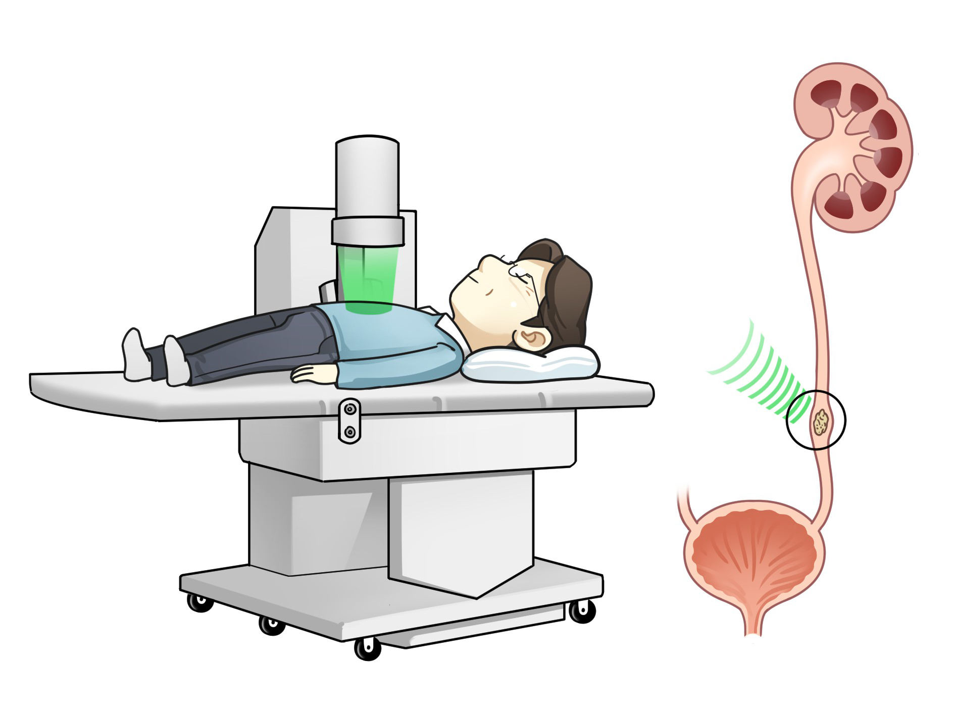 몸 밖에서 충격파를 주어 결석을 파쇄하여 자연 배출이 되도록 유도하는 치료법입니다.